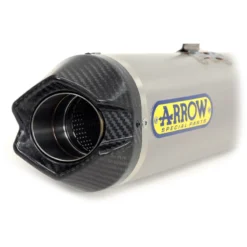 A carbon endcap is the distinctive component for the Works silencers, a range of exhausts desinged and developed for sportbikes. Available with a titanium canister, Works silencer can also be fitted to Arrow header pipes. Their cone-shaped design ensure good performances keeping noise under control.