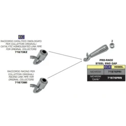 The silencers are secured to the bike by means of mounts welded to the main body, their cone-shaped design provides a reduction of dimensions and weight, but it also reduces the overall volume of the exhaust, thus limitating noise damping capabilities and the application on bigger or demanding engines.