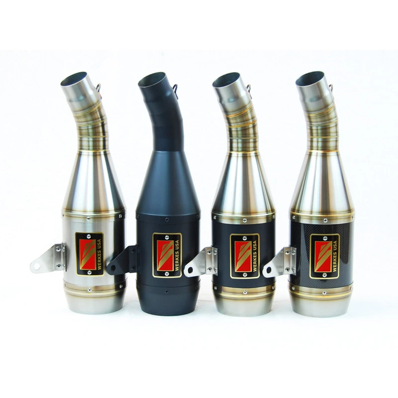All of Competition Werkes Exhausts are TIG welded by hand in the USA, resulting in a decidedly custom look reminiscent of modern GP machines. Only high-quality, laser-cut 304 stainless steel is used due to its durability and rust resistance.
