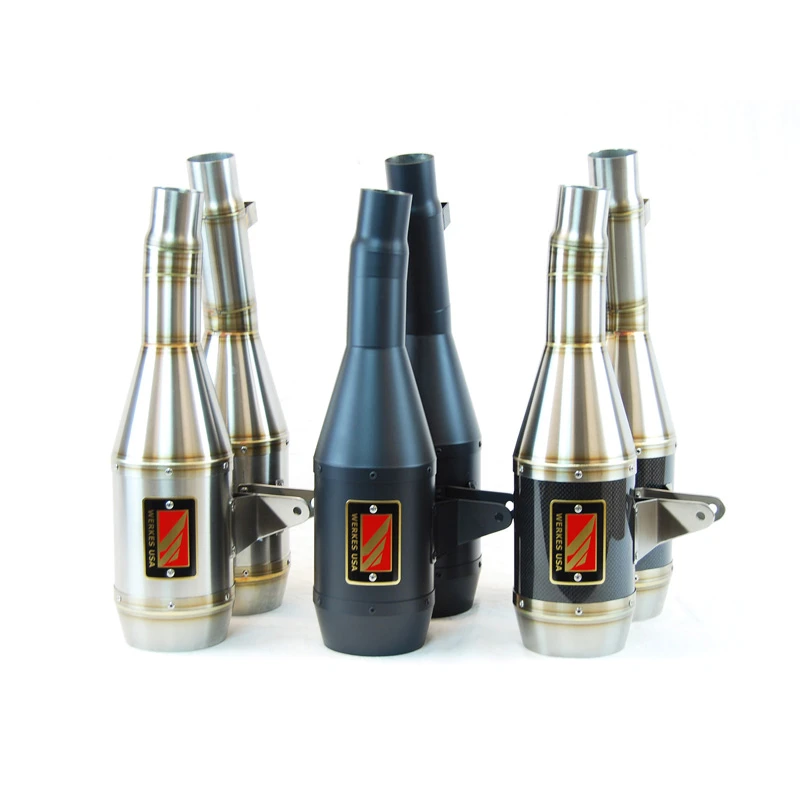All of Competition Werkes Exhausts are TIG welded by hand in the USA, resulting in a decidedly custom look reminiscent of modern GP machines. Only high-quality, laser-cut 304 stainless steel is used due to its durability and rust resistance.