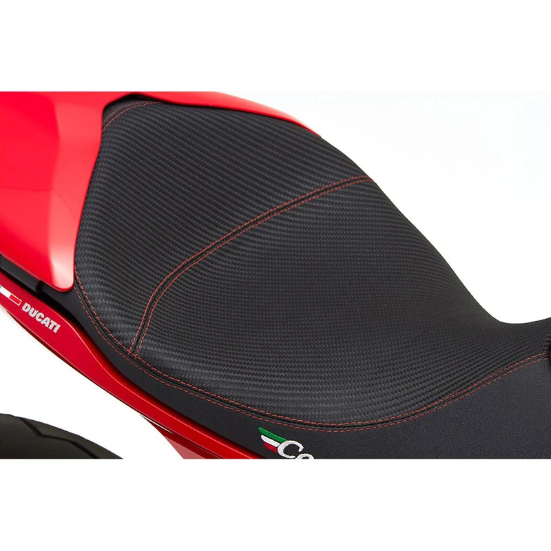 - Corbin saddle works with factory Ducati seat cowling.