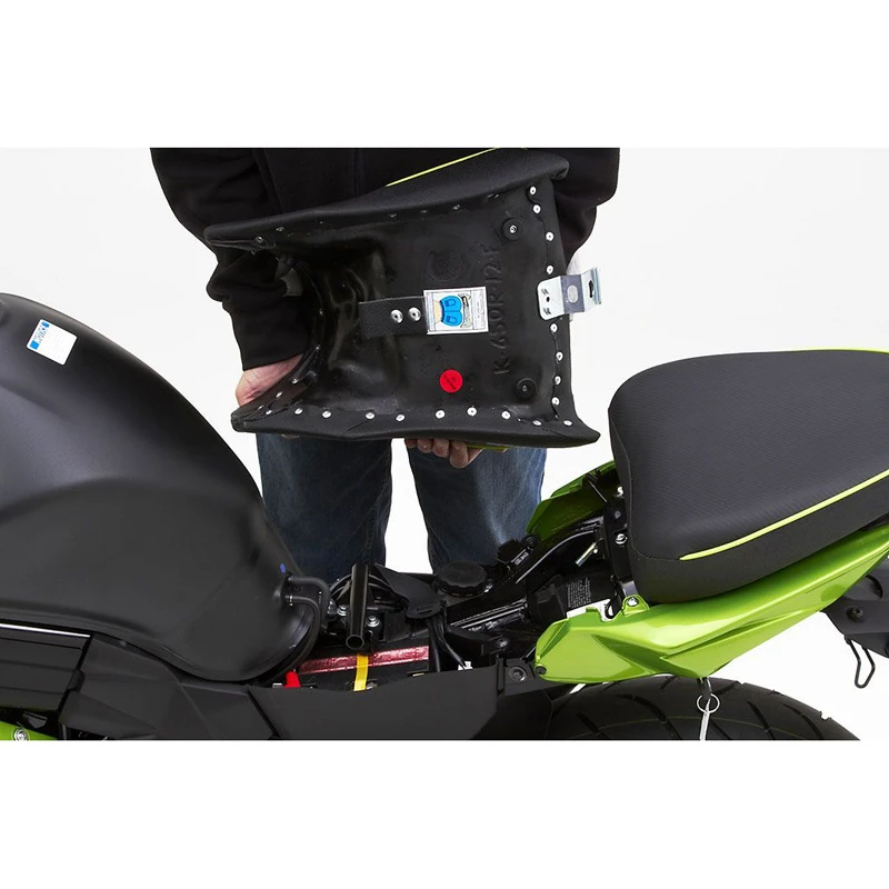 - Rear saddle installs like stock with brackets included. Works with the Kawasaki key lock.
