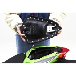 - Rear seat mounts just like stock using the Kawasaki key lock system. Brackets are included and come premounted on the saddle.