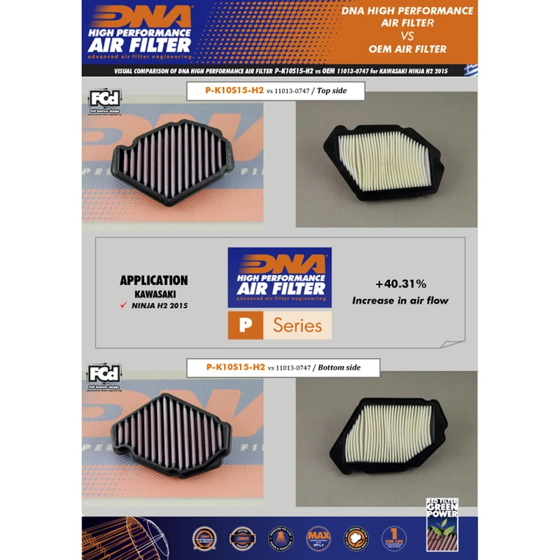 - The DNA filter has a 40.31% higher airflow than the Kawasaki stock paper filter!