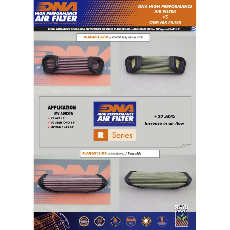 - The DNA filter has a 37.5% higher airflow than the MV Agusta stock paper filter!
