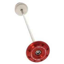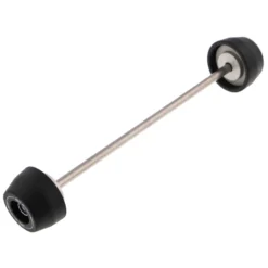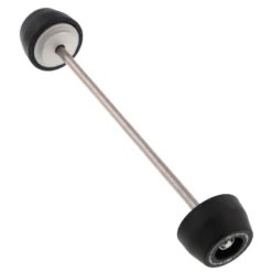 Offering protection to the front wheel spindle, lower front forks and brake calipers, EP spindle bobbins for the Ducati Diavels are discreet though strong. The black bobbins fit perfectly either side of the front spindle, held in place by a rolled-thread spindle rod. At the rear, the spindle bobbin projects from the wheel offering protection to the swingarm, an anodised red hub stop securing the stainless steel rod in place. The durable materials of injection-moulded nylon and aluminum hope to be first to withstand impact should an incident occur.