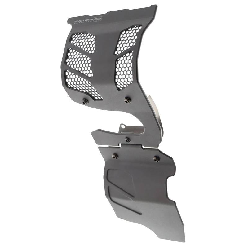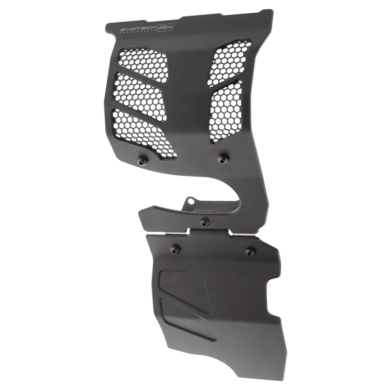 - Evotech Performance engine guards are finished in a black powder coating.