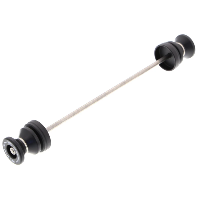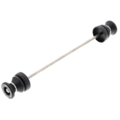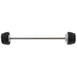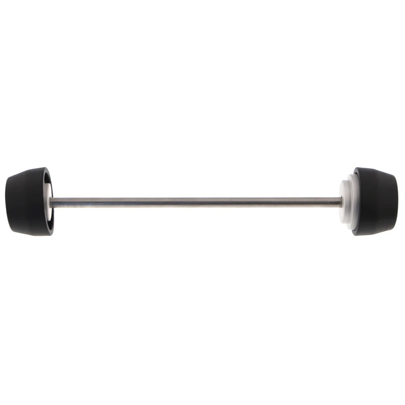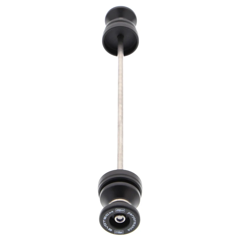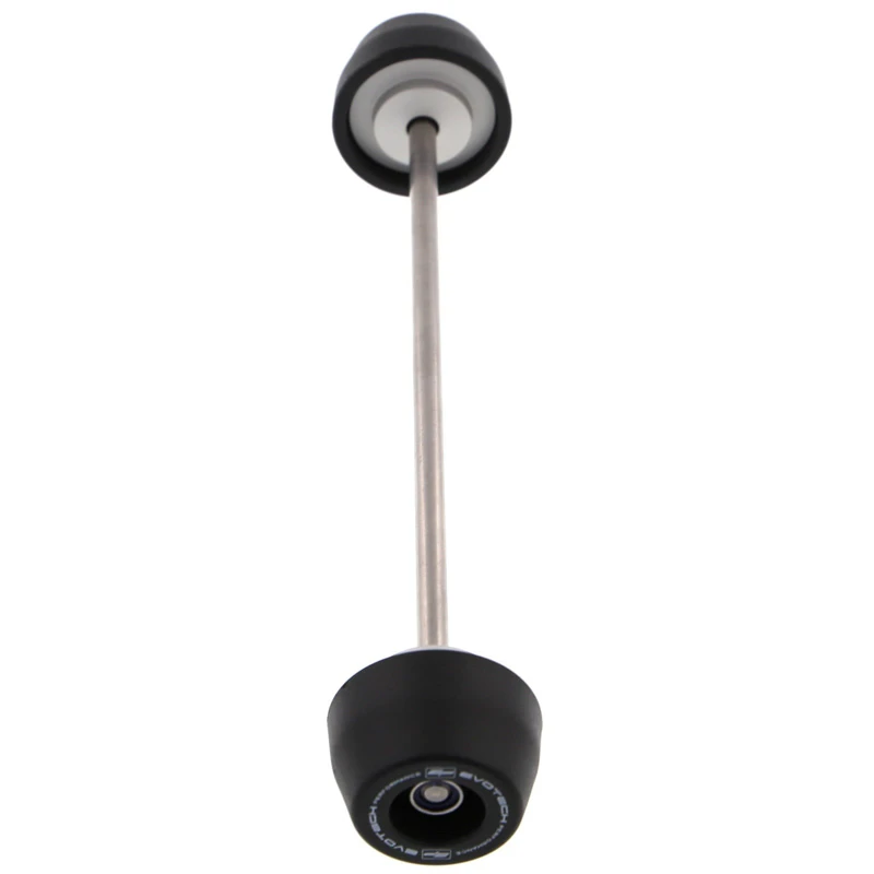 Two of the most popular spindle-fitted products from Evotech Performance are united in the EP Spindle Bobbins Paddock Kit for the Ducati Scrambler Nightshift: front wheel Spindle Bobbins and rear wheel Paddock Stand Bobbins. Both are mounted using a rolled-thread stainless steel spindle rod but feature differently shaped nylon bobbins. The front crash protection bobbins are designed to be first to receive impact in case of an incident, reducing damage to the front forks and brake calipers. At home. the rear hourglass-shaped Paddock Stand Bobbins will securely catch the C or V shaped mounting points of many brands of paddock stand, perfect for upright storage and maintenance of your machine.