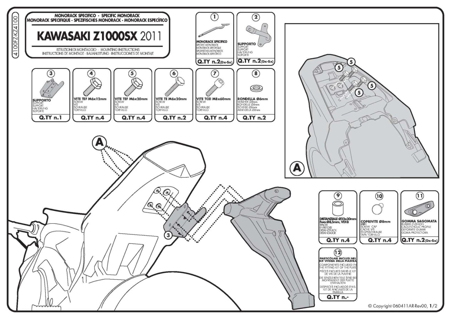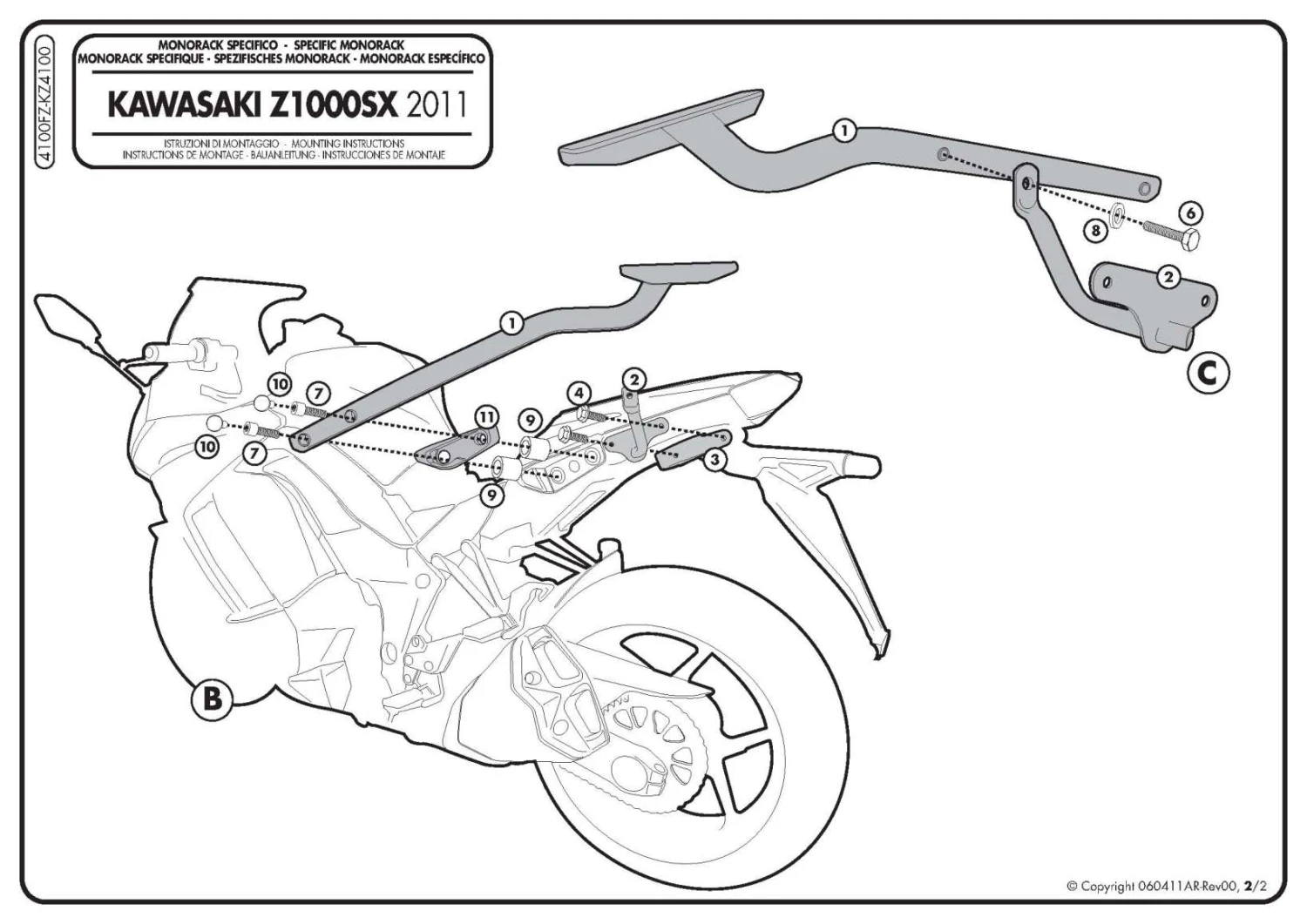 GIVI’s 4100FZ Monorack Arms are made specifically for Kawasaki Ninja Z1000 SX (2011-current).