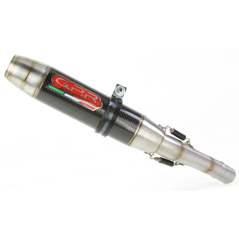 Developed from GPR thanks to Moto GP and SBK races experiences, the system has a ROUND shape, Diam. 80mm, medium weight about 1.55 kg depending from motorbike of destination. GPR provide instructions available as drawings or video or pictures books. It is possible use panniers and central stand and sonda lambda boss is included when necessary. Available many sound file and pictures gallery, product is hand made in Italy, item racing and it has 2 years of international warranty.