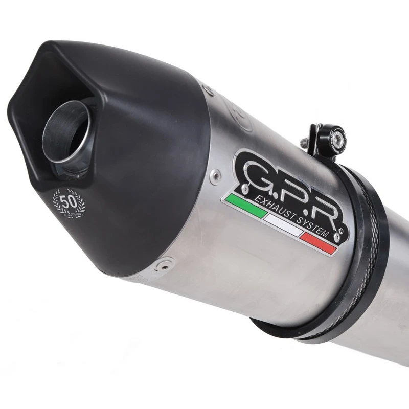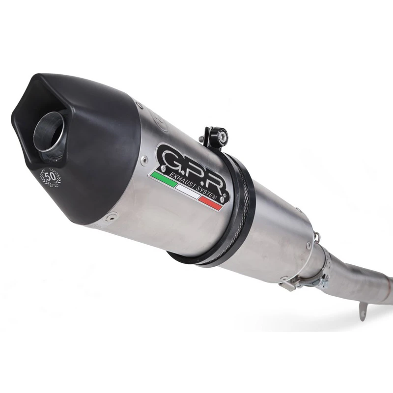 Developed from GPR thanks to Moto GP and SBK races experiences, the system has a conic shape from round to oval, it start with Diam. 96 to 130mm, weight about 1.65 kg depending from motorbike of destination. GPR provide instructions available as drawings or video or pictures books. Item can require mapping for racing use, it is possible use panniers and central stand and sonda lambda boss is included when necessary. Available many sound file and pictures gallery, product is hand made in Italy, it has 2 years of international warranty.