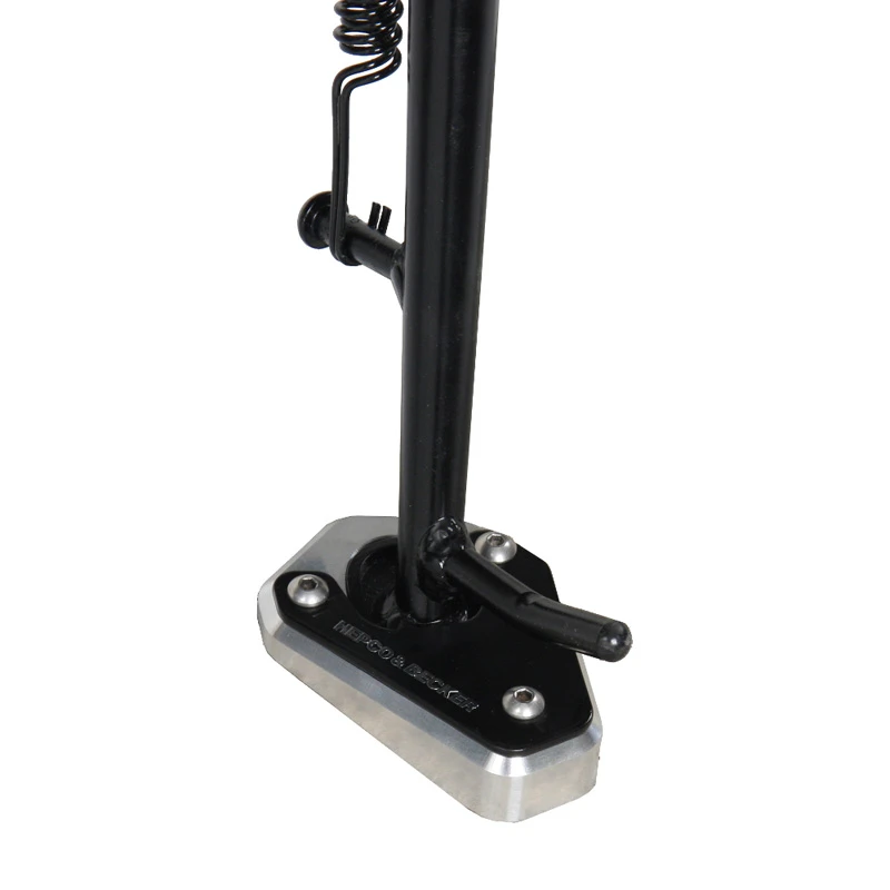 The Side Stand Extension increases the overall diameter of your bike’s side stand by double. This item is made of black anodized aluminum and is installed by the use of three stainless steel screws. The Extension helps ensure that your bike has a firm foot planted in the ground, gravel, mud, or any surface so that you can feel confident walking away from the bike without worry of a tip over.