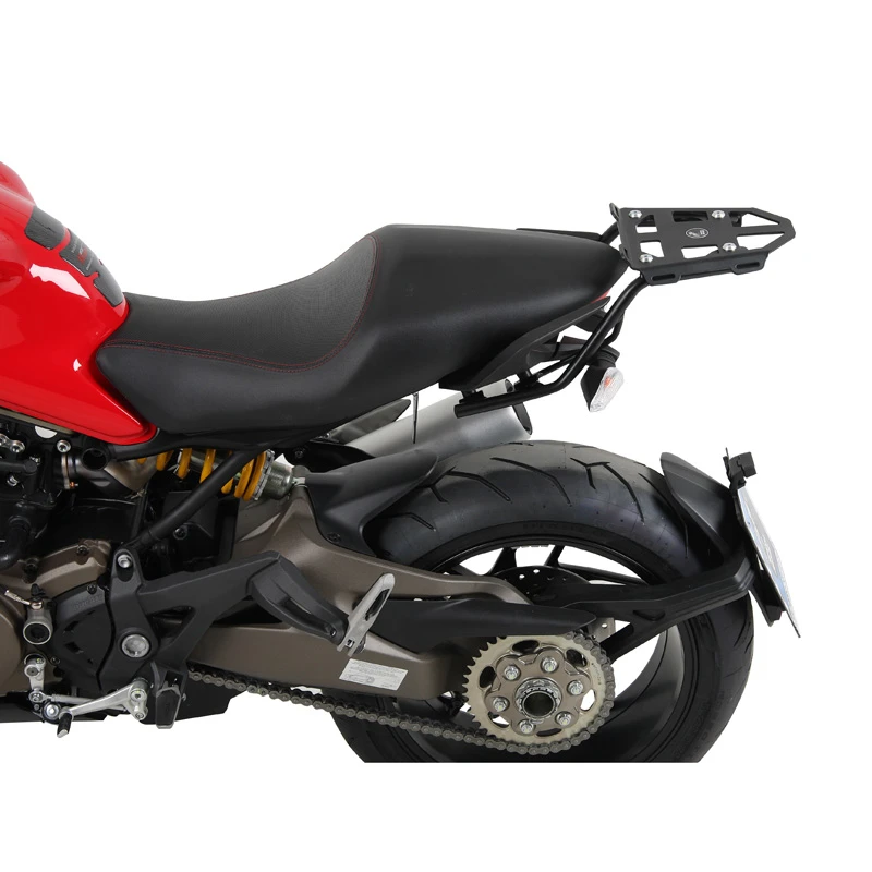 Hepco & Becker’s 660.7525 01 01 Mininrack is made specifically for Ducati Monster 1200 / S. This rack offers a slim, light weight, and unobtrusive luggage solution for those on the go. The Minirack is a small aluminum rack cut out of aircraft grade aluminum with use of a CNC machine. This allows for a perfectly symmetrical shape and cut outs where you are able to strap luggage down. All Miniracks and mounts have a black powder coat finish and are supplied with stainless steel hardware. This rack attaches to the bike using mounting frames and hardware provided in the kit. Everything you need to install this item is provided with the purchase of the Minirack.