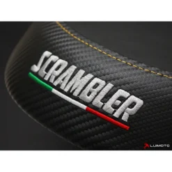The Luimoto Sport Diamond seat cover gives refinement and sporty styling to your Ducati Scrambler. Its contrast diamond stitching, dynamic paneling and high quality materials really make a statement. A scrambler embroidery with a striped Italian flag finishes it off. Stand out with the finishing touch of Luimoto.