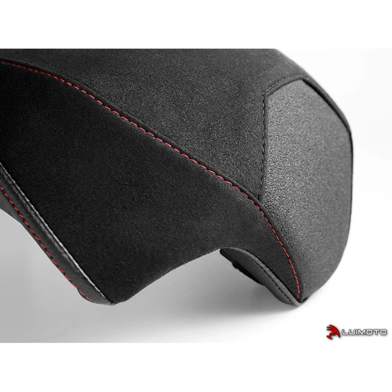 Luimoto’s 1452201 Corsa Passenger Seat Cover, Black with Red Stich is made specifically for Ducati Panigale V4 (2018-)