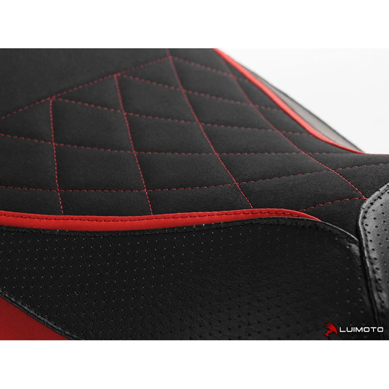 Luimoto’s 1453101 Diamond Sport Rider Seat Cover, Perforated Black with Red Stich is made specifically for Ducati Panigale V4 (2018-)