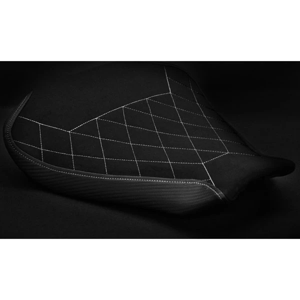 The Diamond Edition seat cover features a Luimoto exclusive quilt design, hand made with our finest materials including Japanese synthetic suede and carbon fiber marine-grade vinyl. It takes our finest craftsmen hours to create. This is the ultimate expression of Luimoto quality for your Mv Agusta F4.