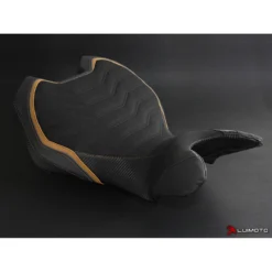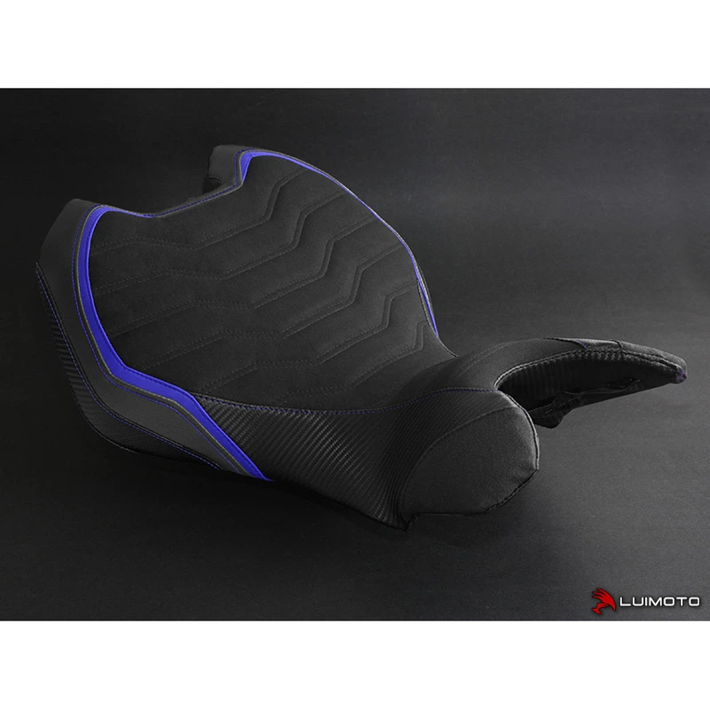 The Turismo Veloce Seat Cover is hand made with all our finest materials. A unique technical ribbing pattern is stitched onto our luxurious suede or marine grade leather vinyl riding surfaces. Carbon fiber look panels compliment the beautiful lines and colours of your motorcycle. This is the ultimate expression from Luimoto to your MV Agusta.