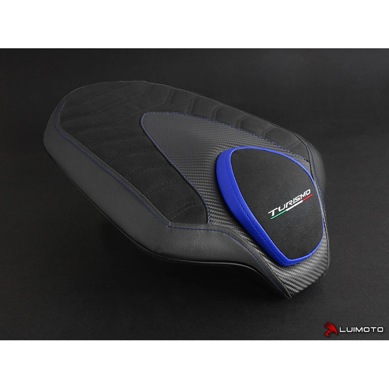 The Turismo Veloce Seat Cover is hand made with all our finest materials. A unique technical ribbing pattern is stitched onto our luxurious suede or marine grade leather vinyl riding surfaces. Carbon fiber look panels compliment the beautiful lines and colours of your motorcycle. This is the ultimate expression from Luimoto to your MV Agusta.