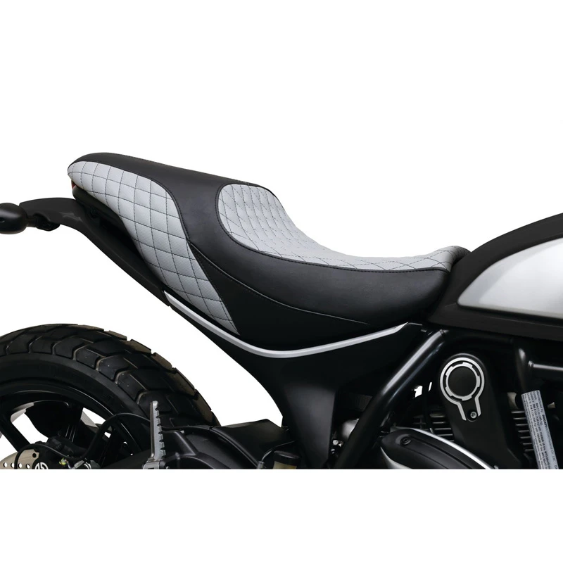 Keep your Scrambler’s styling on point with a distinctive diamond-stitched cover and contoured fit that forms to the frame for a sleek, sexy look. Low cut with a raised tail section that offers lower back support and keeps the driver firmly planted in an aggressive riding posture “in” the motorcycle rather than on it.