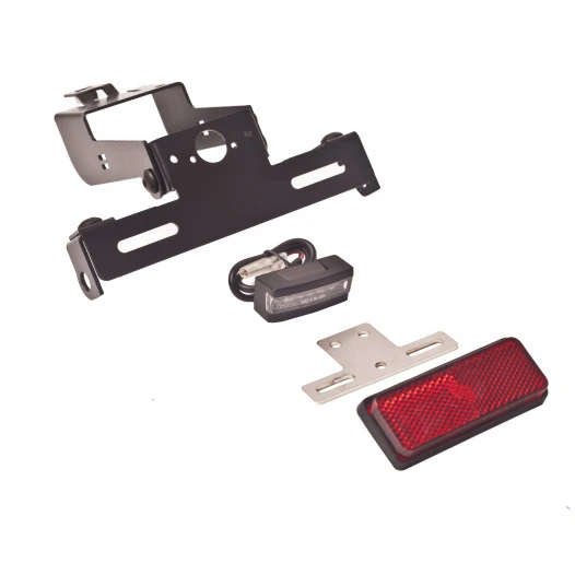PUIG license supports are made of steel 2mm which gives you an assurance of quality product. These are painted with EPOXI paint that avoids rust. Available in black. These article comes with instructions and it is easy to assemble. Fixed or adjustable on inclination depending on models. Universal and specific part number with blinker lodging. Adjustable lodge for turn signals. License supports aren’t delivered with turnlights.