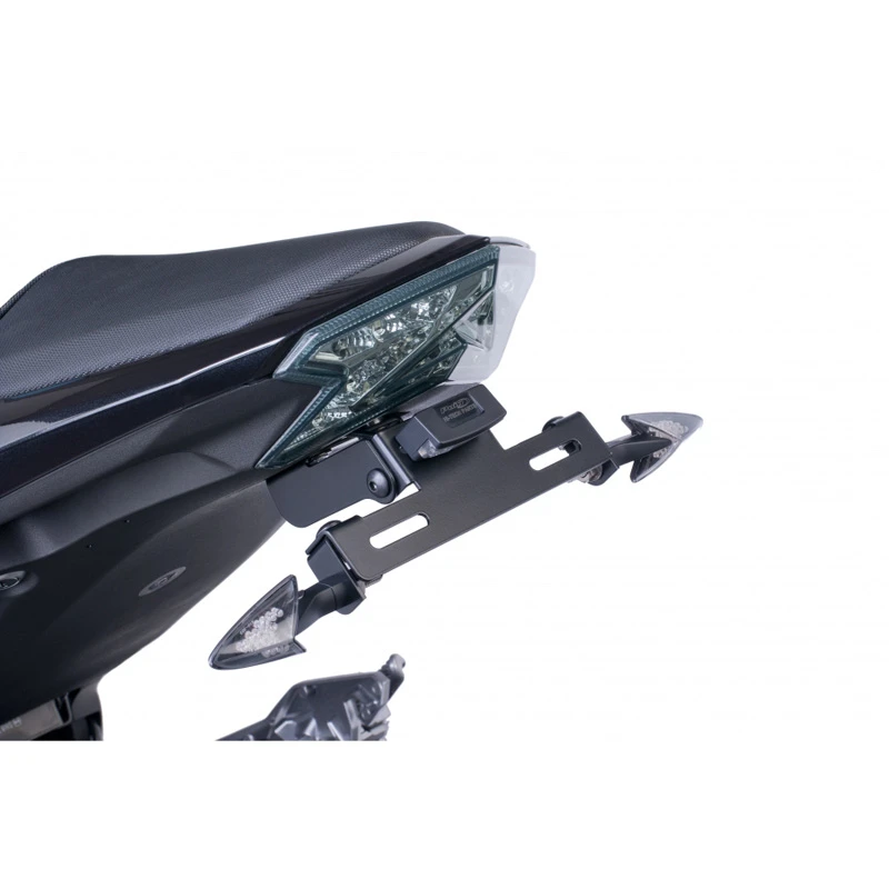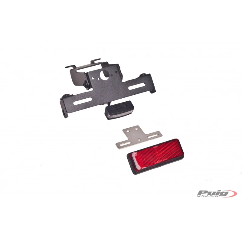 PUIG license supports are made of steel 2mm which gives you an assurance of quality product. These are painted with EPOXI paint that avoids rust. Available in black. These article comes with instructions and it is easy to assemble. Fixed or adjustable on inclination depending on models. Universal and specific part number with blinker lodging. Adjustable lodge for turn signals. License supports aren’t delivered with turnlights.