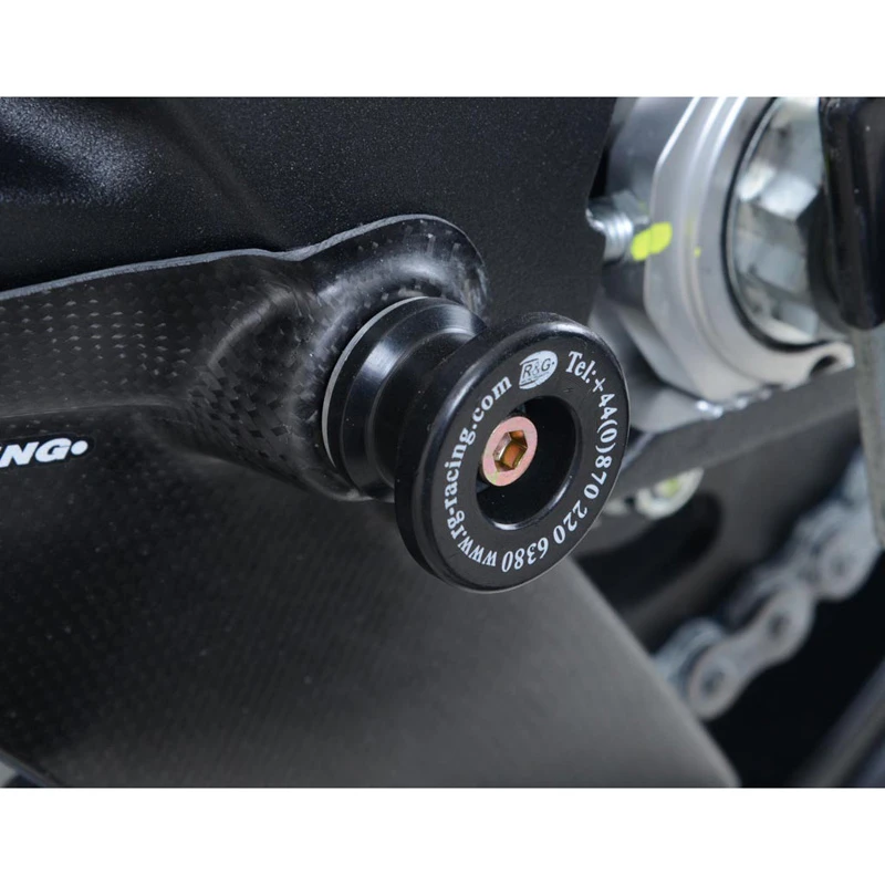 These cotton reels mount directly into the mounting points on the rear swingarm offering the best of both worlds in terms of crash protection and functionality with the ability to use R&G cotton reels, which offer excellent crash protection to those components located towards the rear as well as the ability to lift up the rear of the bike with a paddock stand for maintenance and tyre changes.