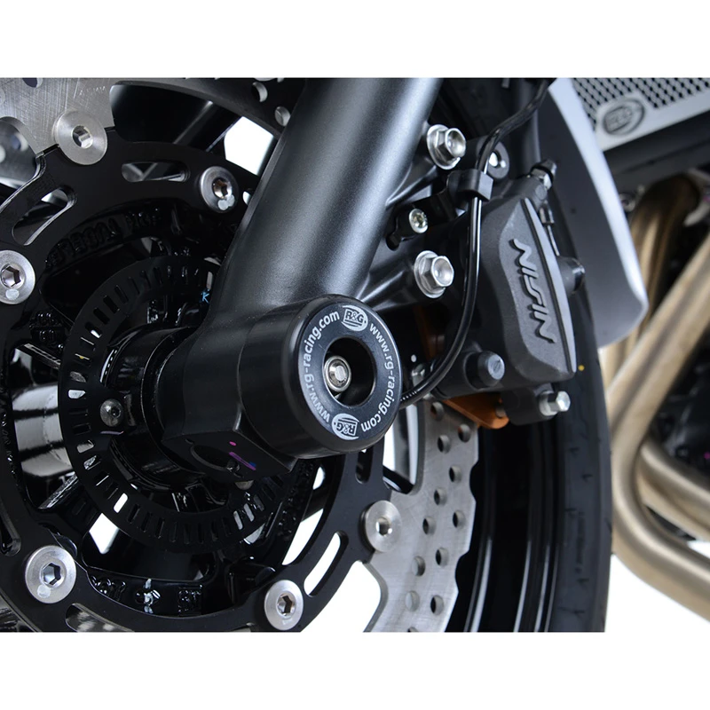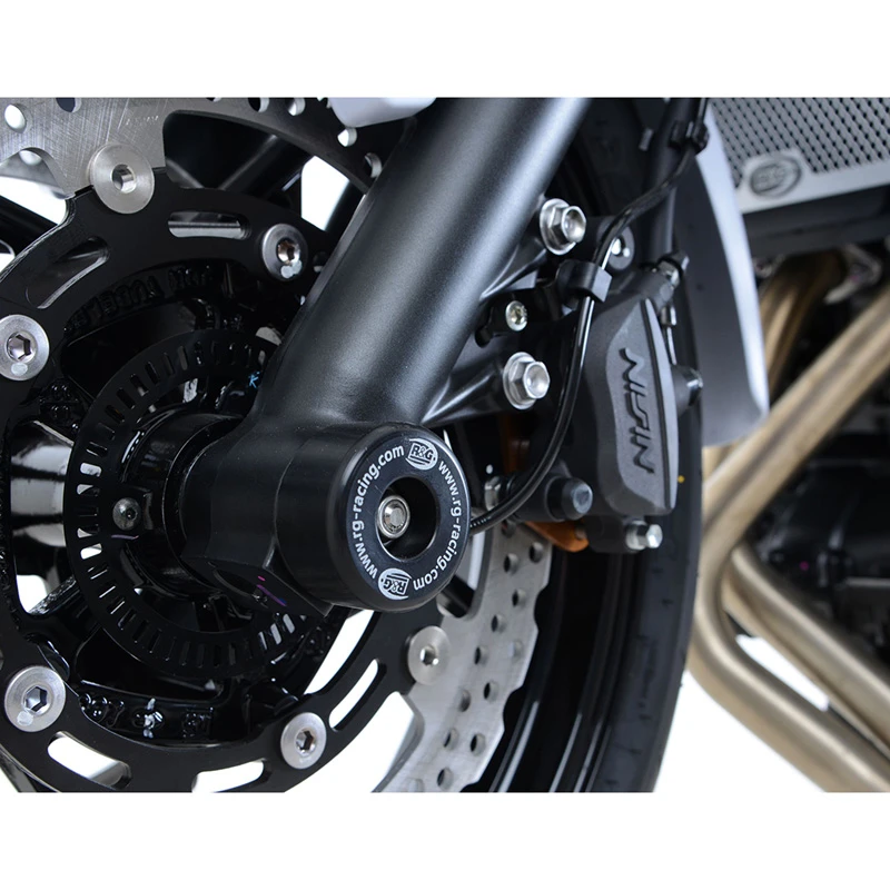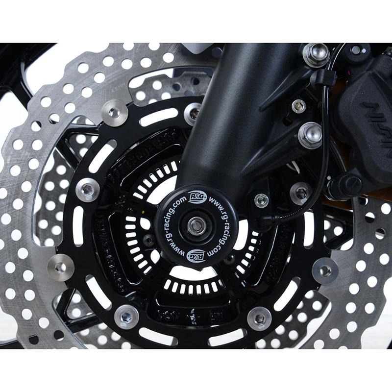 The R&G front axle sliders protect vulnerable front end components like the front axle, lower fork legs and front brakes from damage in the event of a tip over, fall or slide. High Density Polyethylene is utilized for excellent impact absorption and abrasion resistance in order to keep critical hardware from getting “rashed up” and dragged across the pavement. These essential front axle sliders are easy to install without the need for any cutting, drilling or other modifications. High quality hardware secures both sides together and increases structural integrity for an even greater level of defense.