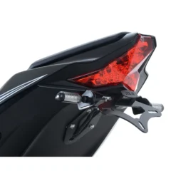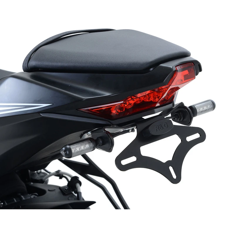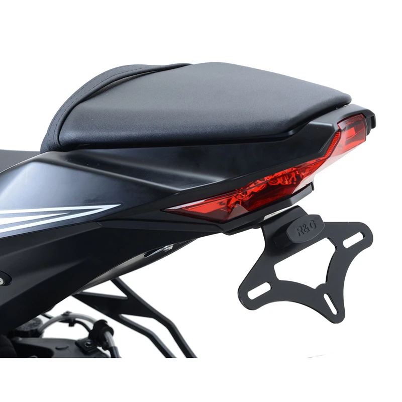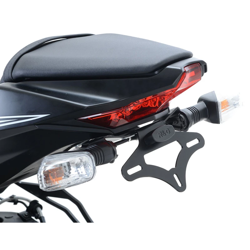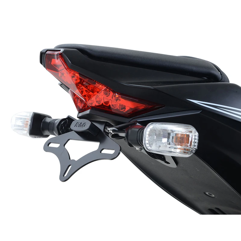 R&G Fender Eliminator stainless steel matte black powder coated construction and design ensures long lasting durability and performance. R&G tail tidy unit is easy to fit and will transform the rear end of the bike, removing the expansive (and often ugly!) OEM licence plate holders – replacing them with a much sleeker looking unit, tucking the number plate underneath the rear seat unit, for a much more stylish sporty look.
