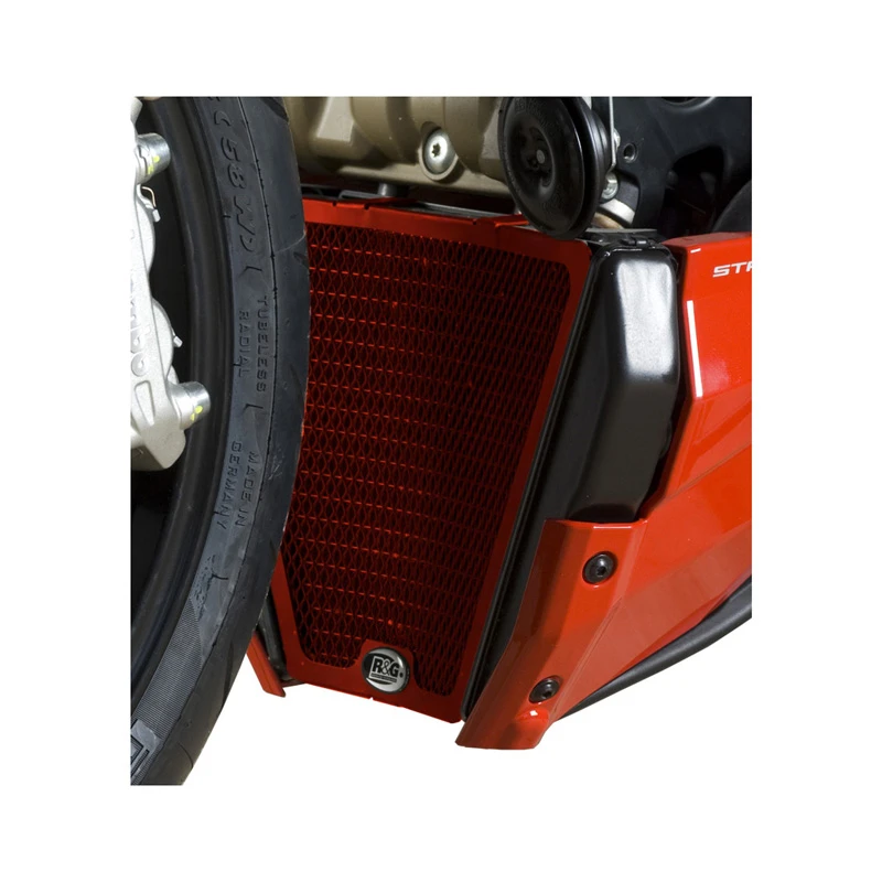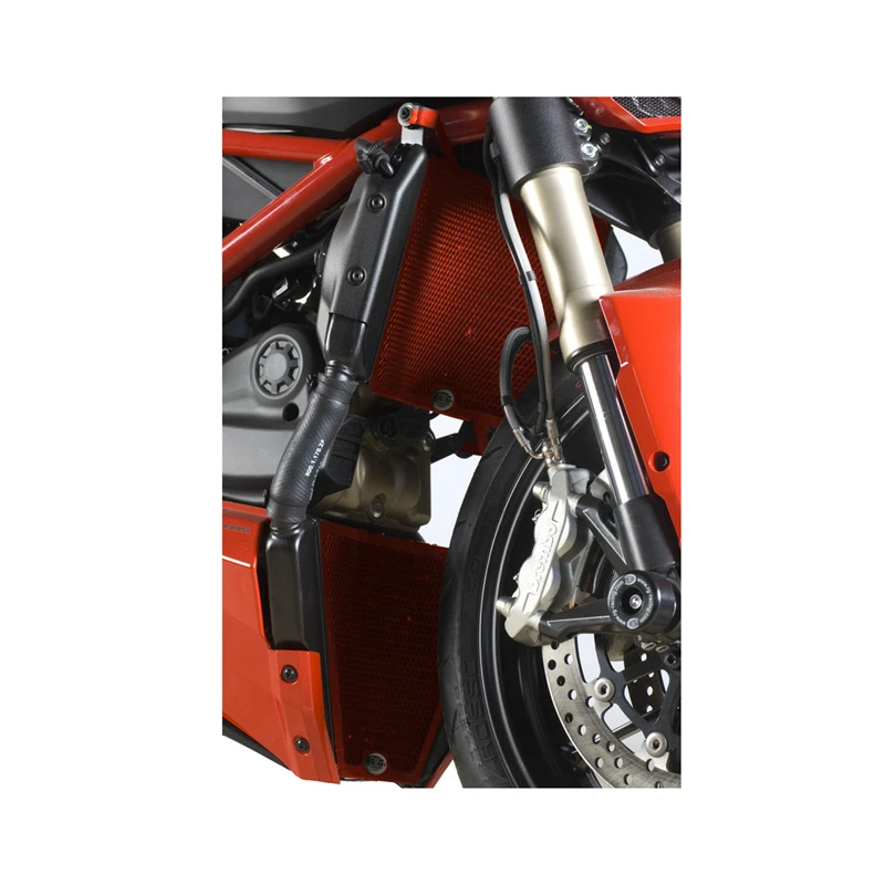 This R&G Racing RAD0116RE Radiator Guard Set, Red is made specifically for Ducati 848 Streetfighter (2012-current).