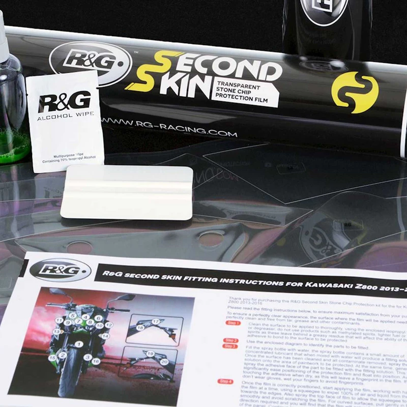 R&G Second Skin stone chip protection film is a non-yellowing (UV Stable), ultra-tough, easy-to-apply, polyurethane protective film. Designed to protect your road or track motorcycle from stone chips, road salt, tar, abrasions, fairing stress fractures and bodywork/fuel tank scratches from general use. The unique properties of our protection film enable it to disperse the impact energy of gravel and small stones, bouncing them off and leaving your bodywork untouched beneath.