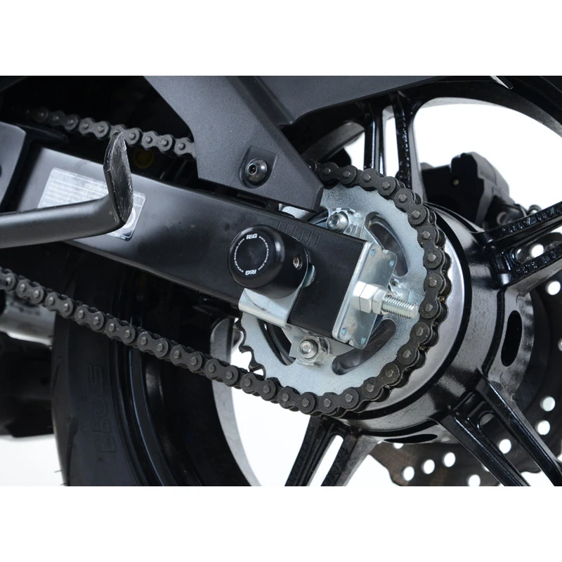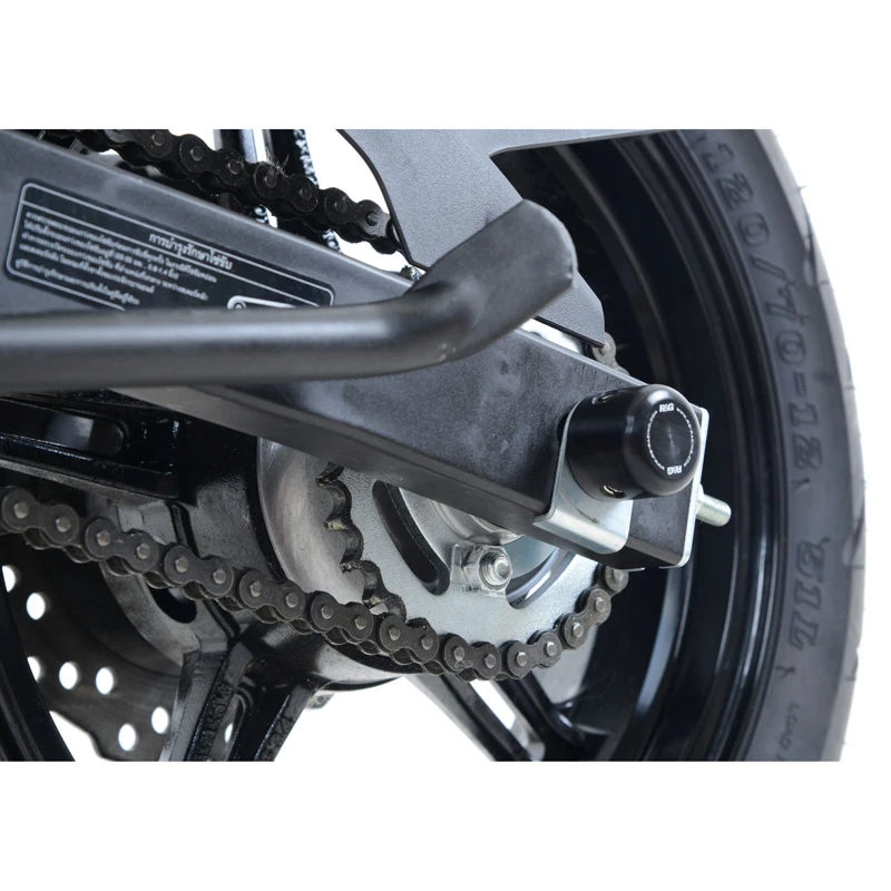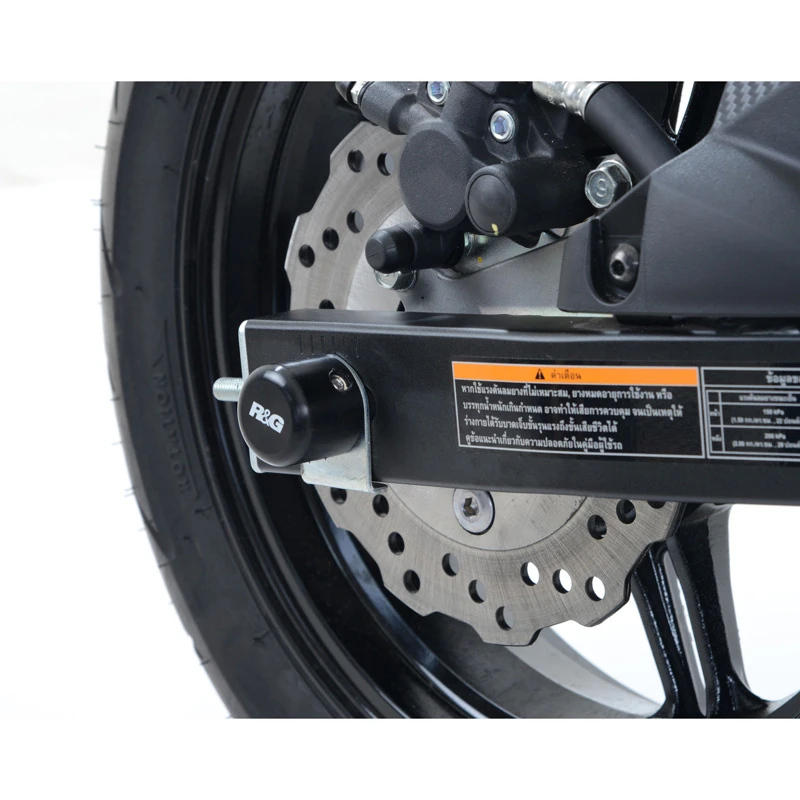 Prevent costly repairs and ride ending damage to your motorcycle�s rear brake disc, caliper and sprocket with buy installing the R&G swingarm protectors for the Kawasaki Z125 PRO. Engineered specifically to limit damage during a drop or slide, this kit utilized replaceable high density polyethylene bobbins that are designed to scrub speed without digging in and flipping the bike. Simple to install, this crash protection mounts to the left and right side of rear wheel spindle.