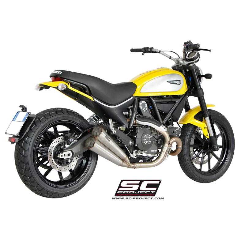 SC-Project’s D16-D39A Conic Twin Exhaust, Stainless steel is made specifically for Ducati Scrambler 800 (2015-2016).