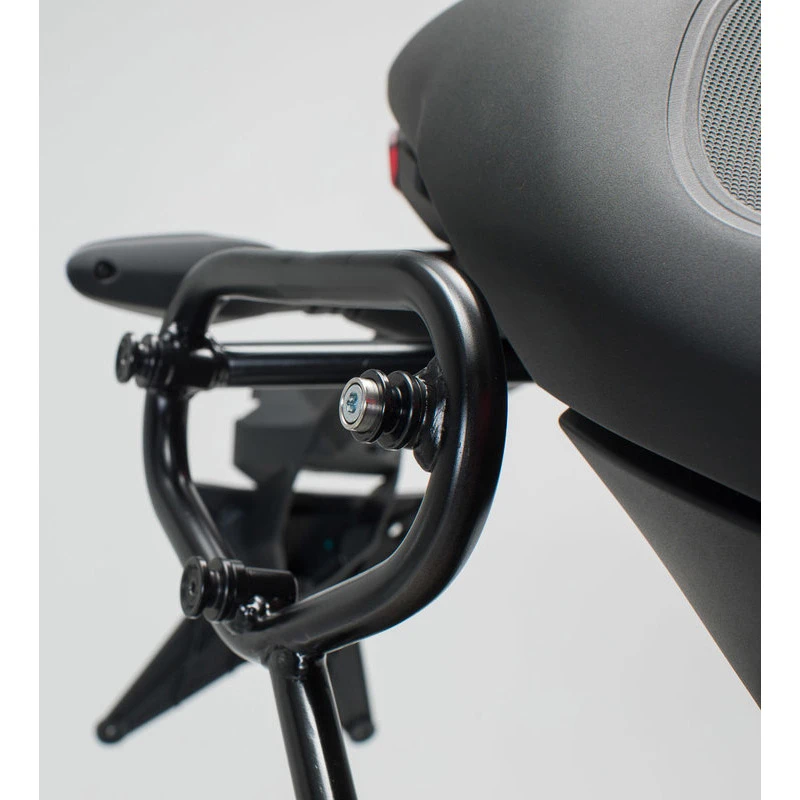 The precise, bike-specific development of the SLC side carrier allows easy and secure mounting on original mounting points on the bike. URBAN ABS side cases, Legend Gear side bags LC1/LC2 or SysBag 10/15 with adapter plate can be attached and removed within seconds due to a quick-lock system.