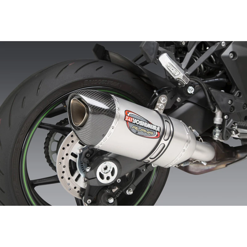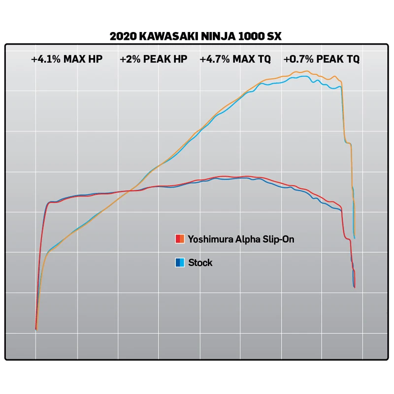 - Stock muffler: 11.4 Lbs. VS Yoshimura carbon fiber Alpha Slip-on: 6.1 Lbs